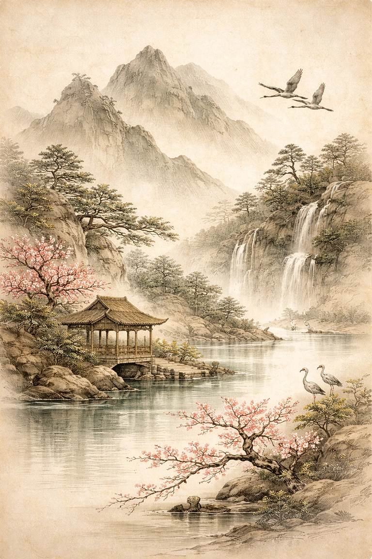 ✦ Uso de tinta, acuarela o pigmentos minerales sobre papel de arroz o seda.