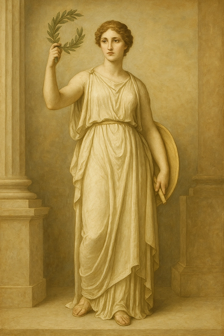 “classical painting”, “neoclassical composition”, “Greek and Roman art style”, “balanced proportions”, “idealized human form”, “muted palette”.