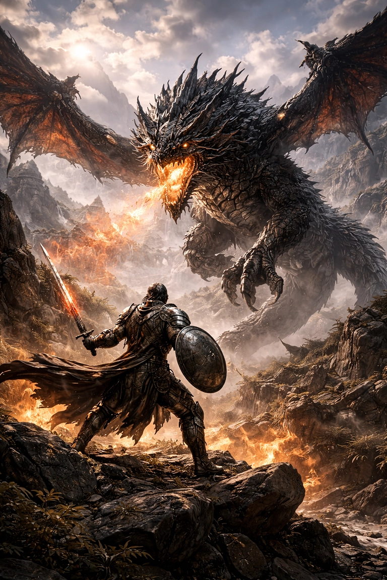 El estilo Epic Realism es ideal para crear escenas históricas, fantásticas o conceptuales de gran escala. Funciona en arte narrativo, cinematográfico o promocional, donde la emoción visual debe ser impactante. En prompts de IA, utiliza términos como epic realistic painting, cinematic realism, heroic composition, dramatic light, grand scale landscape o historical fantasy scene.