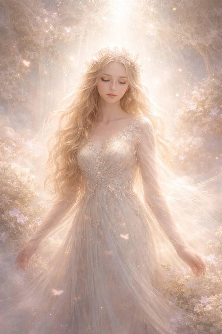 En tus prompts, combina términos como ethereal light, soft glow, celestial atmosphere, translucent textures, heavenly aesthetic, dreamlike composition o poetic diffusion.