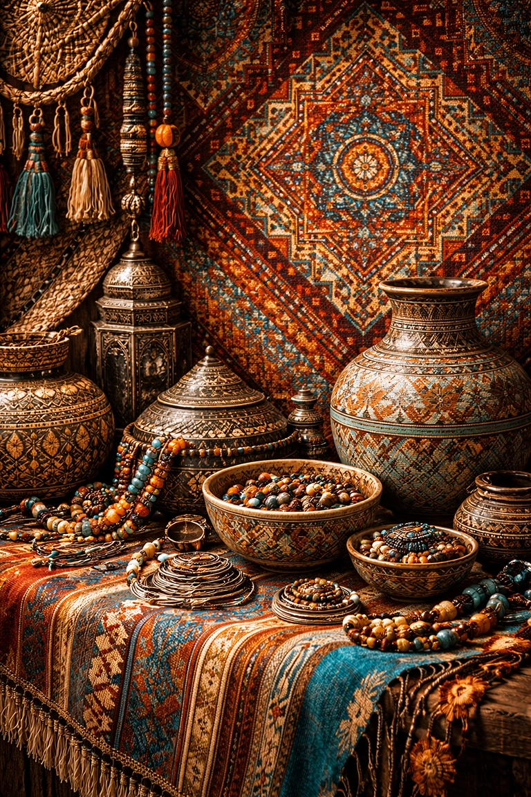 Para mantener coherencia, elige una región o tradición concreta como referencia (por ejemplo: Berber pattern, Mexican textile, Indian mandala, Nordic folk motif). Juega con la repetición rítmica y la textura visual para lograr equilibrio entre modernidad y herencia cultural.