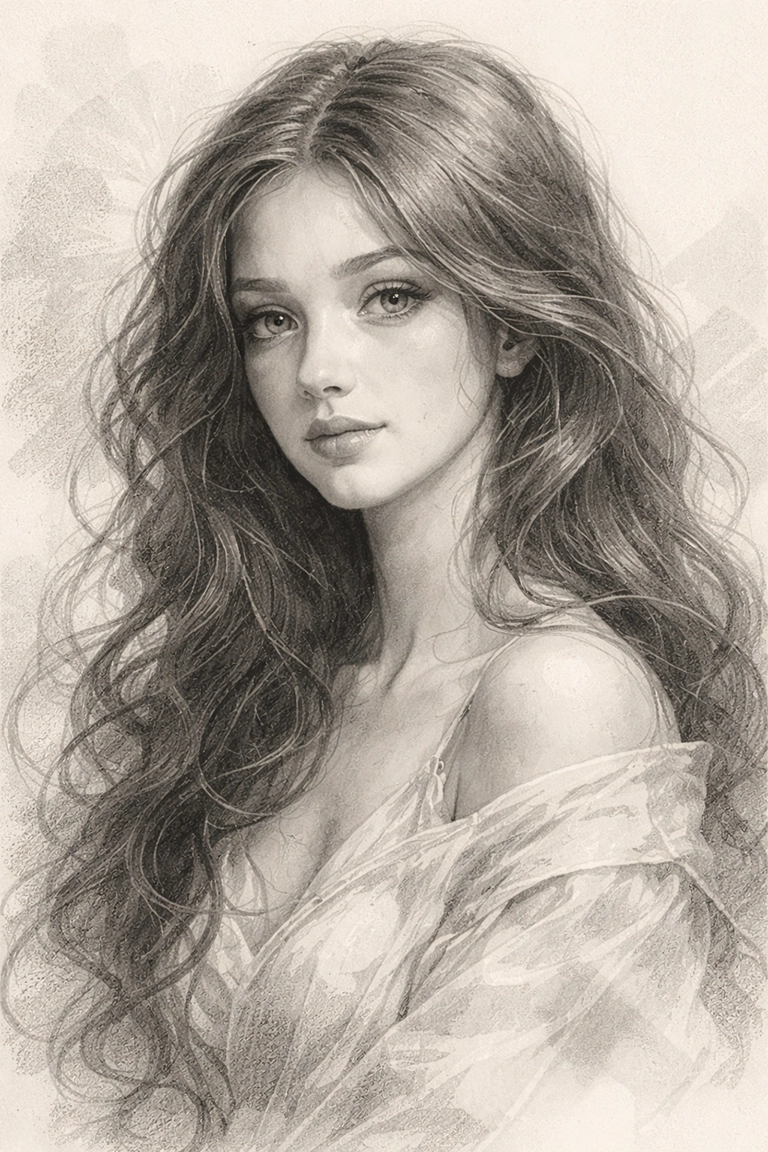 El estilo Graphite es ideal para estudios anatómicos, retratos clásicos, bocetos conceptuales o arte con un toque introspectivo. En prompts de IA, utiliza términos como graphite drawing, pencil sketch, realistic graphite texture, monochrome study, hand-drawn pencil art o fine art graphite rendering.