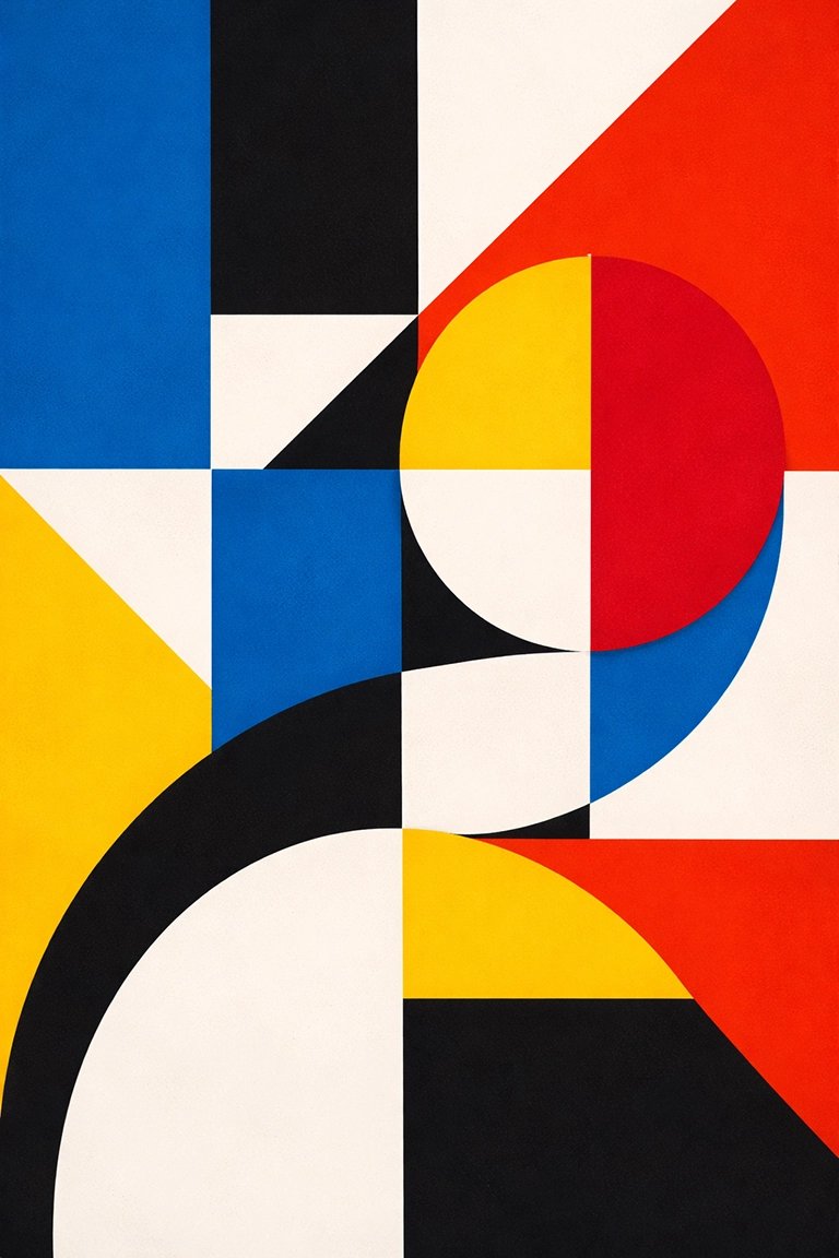 El estilo Hard-Edge Painting es ideal para composiciones abstractas, diseño contemporáneo o exploraciones visuales de color y geometría. En prompts de IA, usa términos como hard-edge painting, geometric abstraction, flat color fields, precise edges, minimalist composition o modern color geometry.
