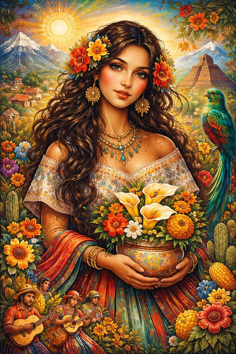 El estilo Latin American Art es ideal para retratos simbólicos, paisajes culturales, murales digitales o narrativas visuales identitarias.