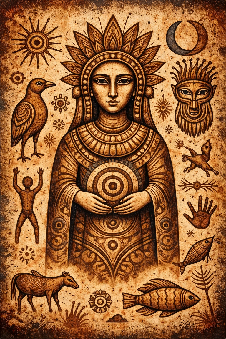 El estilo Primitive Art es ideal para obras conceptuales, temáticas culturales o proyectos que busquen evocar lo ancestral y lo simbólico. En prompts de IA, usa términos como primitive art, tribal motifs, ancient cave painting, totemic design, African sculpture style, prehistoric art, earth pigment texture, o ritual symbolism.