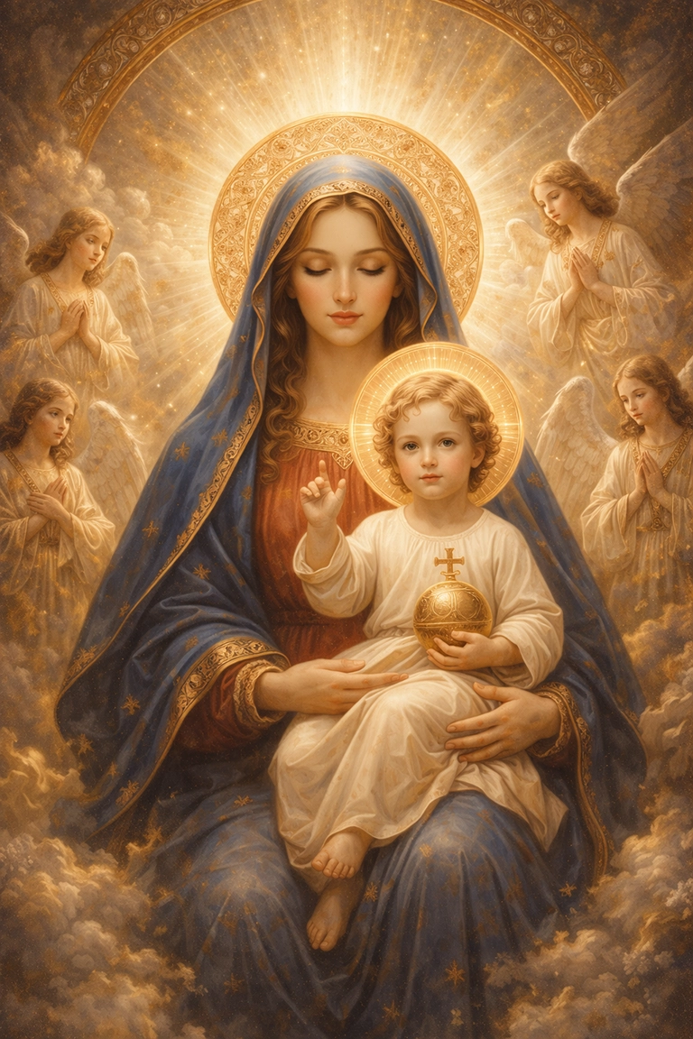 Para mantener coherencia, enfatiza la simetría, la luz celestial y el uso simbólico del color. Añadir detalles como halos, oro bruñido o fondo oscuro ayuda a reforzar la sensación de lo sagrado. Este estilo permite que la IA explore la espiritualidad desde la belleza, creando imágenes que evocan respeto, fe o contemplación.
