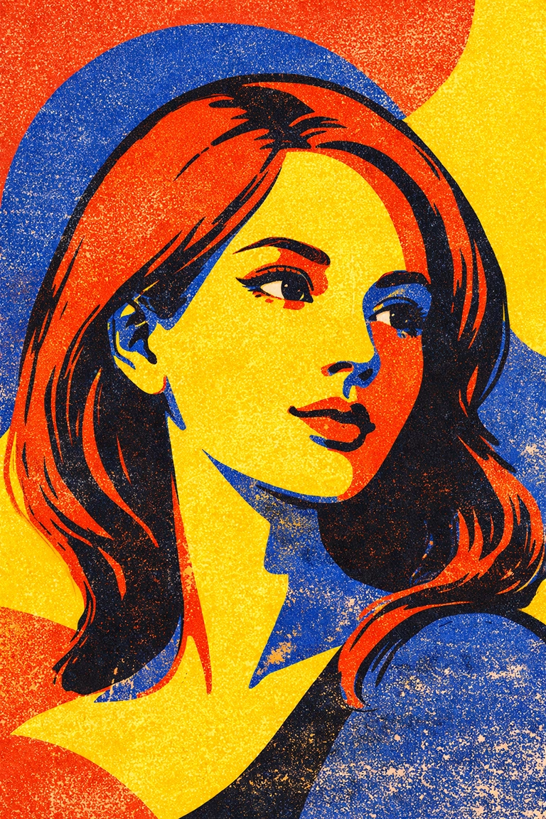 El Screenprint Style es perfecto para composiciones gráficas, arte editorial o proyectos con estética moderna. En prompts de IA, utiliza términos como “screenprint style”, “silkscreen layers”, “flat colors”, “bold graphic design”, “pop art composition”, “ink texture” o “color separation aesthetic”.