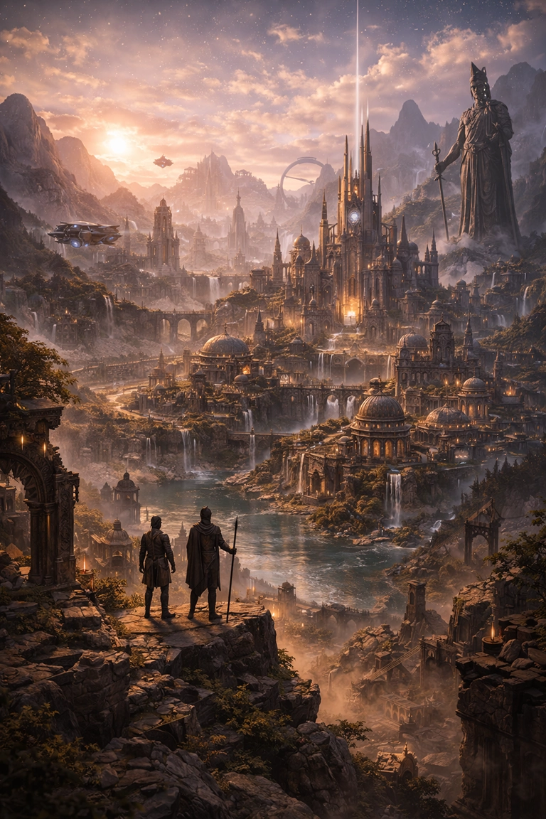 El estilo Worldbuilding es ideal para crear entornos conceptuales, paisajes narrativos o universos de ficción con identidad visual. En prompts de IA, puedes usar términos como worldbuilding concept art, fantasy civilization design, sci-fi environment, ancient ruins world, architectural storytelling o immersive landscape.